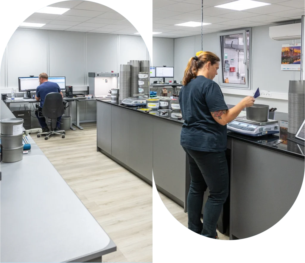 Laboranalysen von Farbe, Lack, Papier und Feuchtmittel.